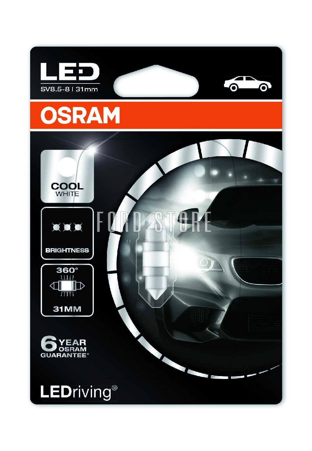 C5W LED 12V 1W 6000K 31MM SV8.5-8 / FESTOON / ХОЛОДНИЙ БІЛИЙ OSRAM 6497CW01B