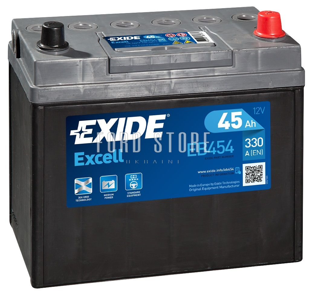За Вашим запитом запчастини: EB454/EXIDE, ми знайшли наступний товар: АКБ 45Ah-12v Exide EXCELL (234х127х220), R, EN330.
