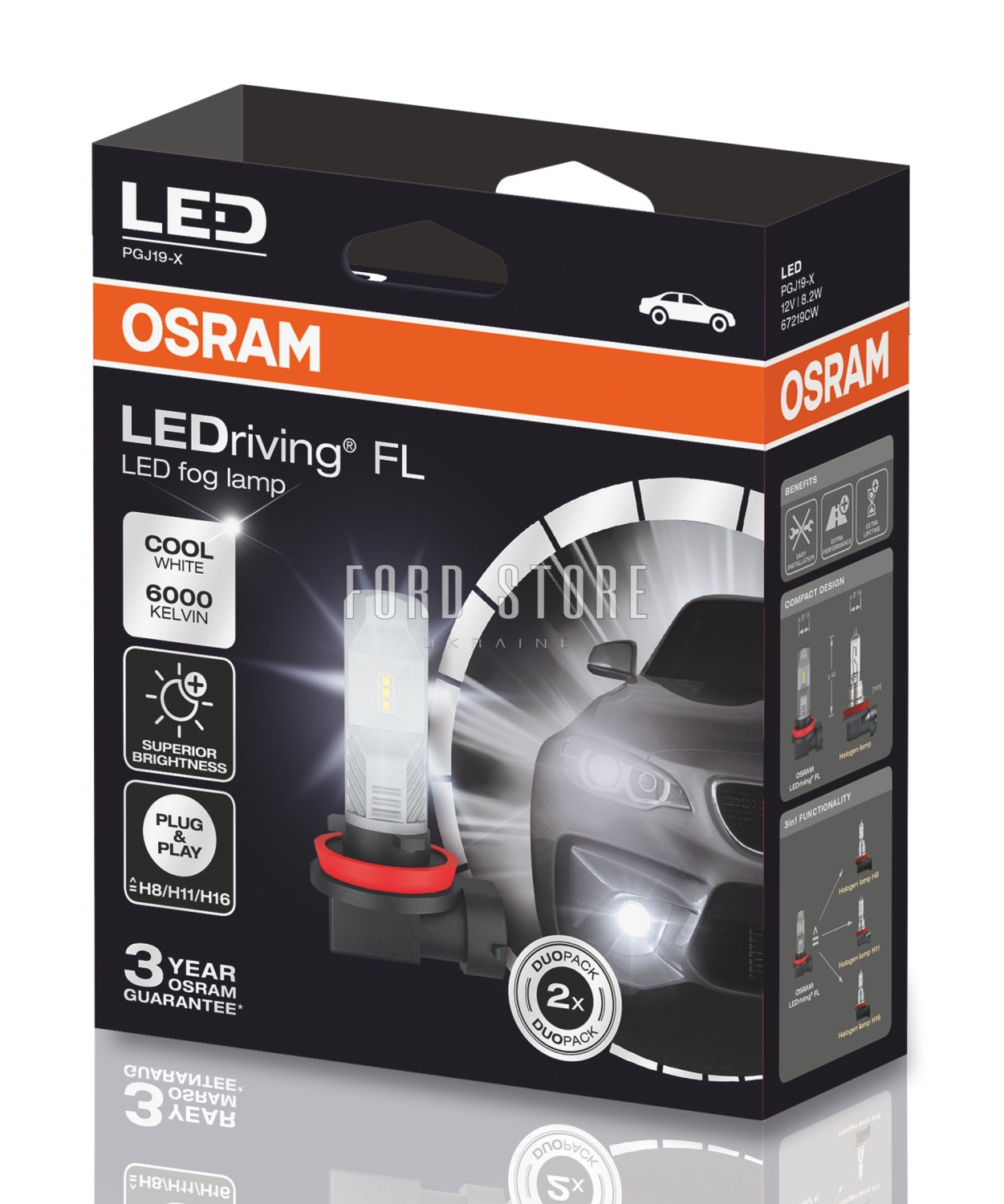 За Вашим запитом запчастини: 67219CW/OSRAM, ми знайшли наступний товар: H8/H11/H16 LED 12V 8.2W 6000K PGJ19-1/2/3 / LEDRIVING® FOG LAMP GEN2 / COOL WHITE - ХОЛОДНЕ БІЛЕ СВІТЛО / 2 ШТ..