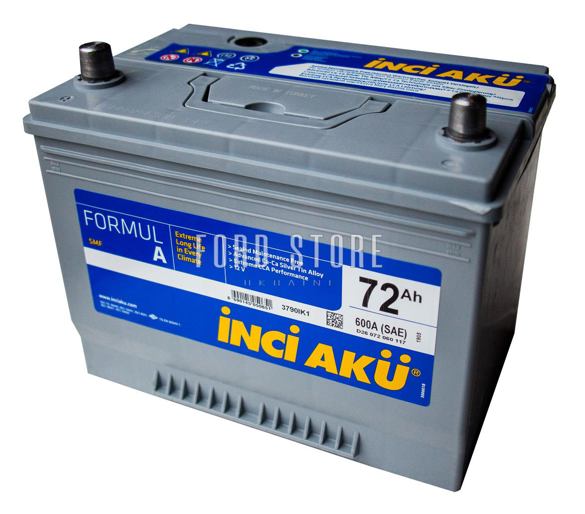 За Вашим запитом запчастини: 6000942/INCI AKU, ми знайшли наступний товар: 72Ah-12v INCI I SuprA Asia (264х175х220), L, EN600.