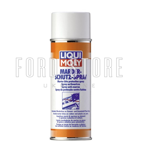 Захисний засіб Liqui Moly Marder-Schutz-Spray для гумових та пластмасових деталей автомобілів від пошкодження внаслідок укусів гризунів. Застосування просте та швидке. Запобігає дорогі ремонтні роботи внаслідок таких ушкоджень. Продукт складається з комбінації запахів, яка нешкідлива для тварин та навколишнього середовища. Наноситься на всі пластмасові та гумові поверхні. Наносити слід періодично через кожні 14 днів.