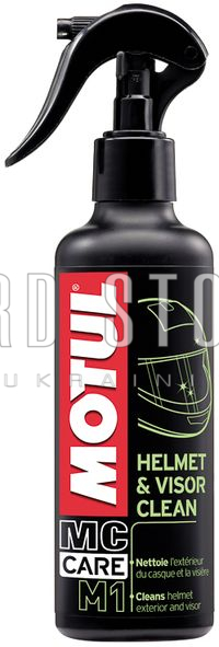 Розпиліть MOTUL M1 HELMET & VISOR CLEAN з відстані приблизно 20 см. на зовнішню поверхню шолома та захисного скла. Залишіть шолом на кілька хвилин для висихання. Протріть м'якою сухою тканиною для остаточної обробки поверхні.