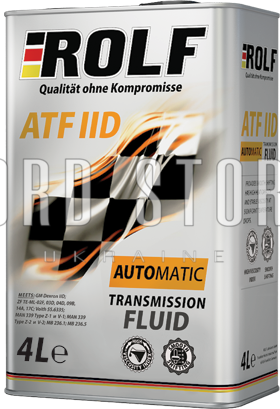 ROLF ATF IID - сучасна багатофункціональна рідина для автоматичних коробок передач та гідропідсилювачів кермового керування. Виготовляється на основі високоякісних мінеральних базових масел глибокого очищення з високим індексом в'язкості. Містить високоефективні антиокислювальні, протизносні, миючі та протипінні присадки та спеціальні модифікатори тертя.