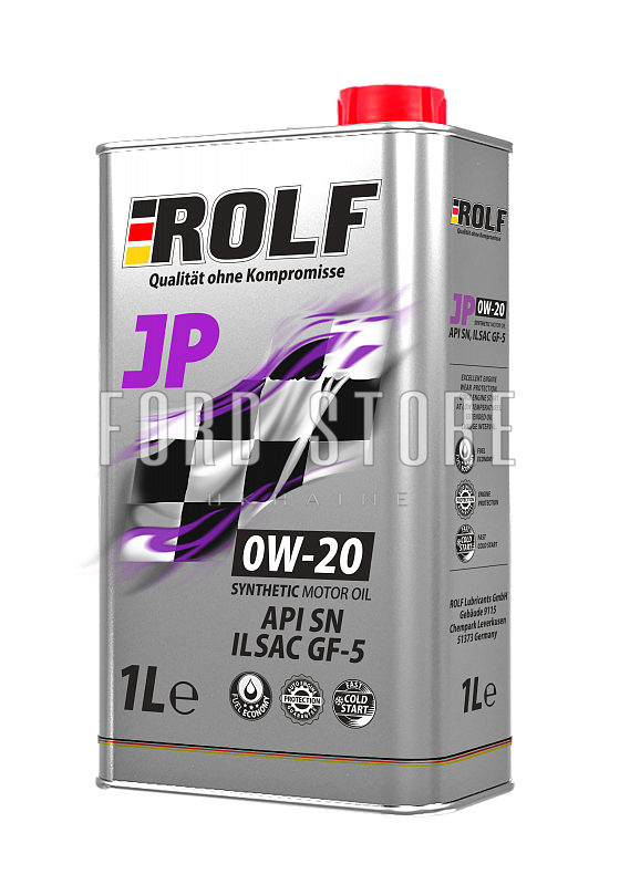 Масло моторне синтетичне ROLF JP SAE 0W-20, ILSAC GF-5/API SN призначене для всесезонного застосування в бензинових двигунах, виробники яких рекомендують використовувати моторні олії, що відповідають специфікаціям API SN, ILSAC GF-5.