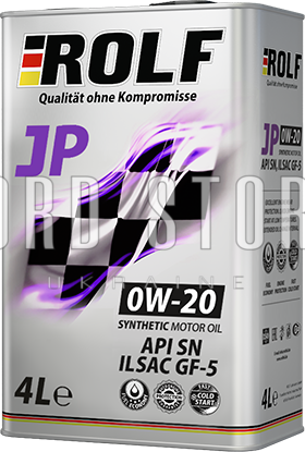 Масло моторне синтетичне ROLF JP SAE 0W-20, ILSAC GF-5/API SN призначене для всесезонного застосування в бензинових двигунах, виробники яких рекомендують використовувати моторні олії, що відповідають специфікаціям API SN, ILSAC GF-5.