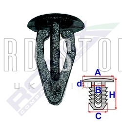 За Вашим запитом запчастини: 11450/ROMIX, ми знайшли наступний товар: Затискач A 13,6 B 7 C 9,9 H 19,6, D= 9.