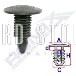 За Вашим запитом запчастини: A175047/ROMIX, ми знайшли наступний товар: Затискач A 18,4 B 7,8 C 7,7 H 21,8, D= 7.