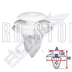 За Вашим запитом запчастини: C10075/ROMIX, ми знайшли наступний товар: Затискач A 12,9 B 8,5 C 17,9 D 2,6 H 20, D= 9.
