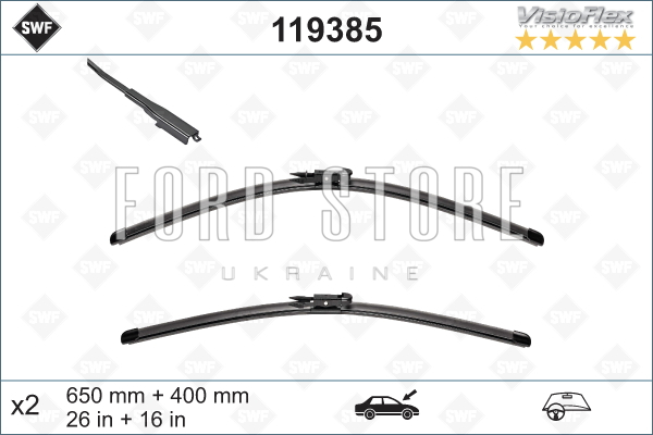 За Вашим запитом запчастини: 119385/SWF, ми знайшли наступний товар: Щітки склоочисника Lincoln MKC 650/400mm 26/16".