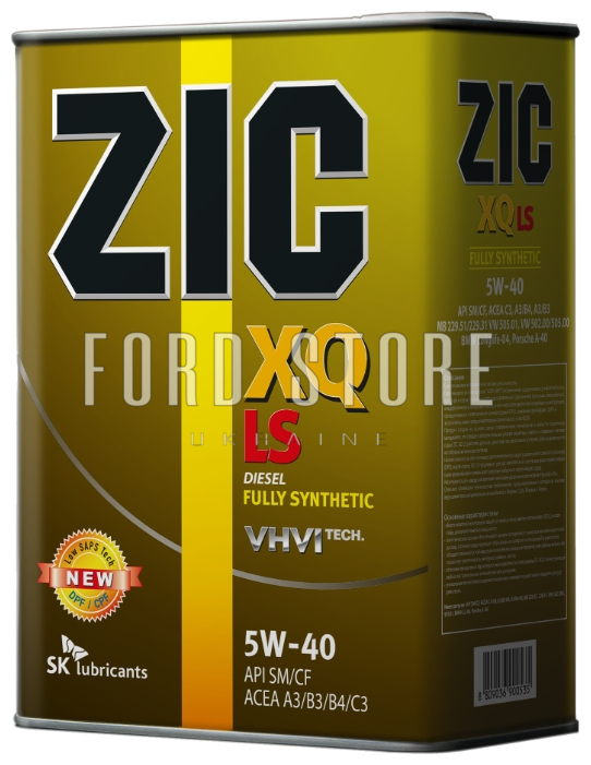 ZIC XQ LS - універсальне всесезонне синтетичне класу «преміум», виготовлене за технологією LOW SAPS (знижений вміст сульфатної золи, фосфору та сірки). Рекомендується для бензинових двигунів та дизельних двигунів легкових автомобілів, позашляховиків, вантажівок малої потужності, мікроавтобусів з турбонаддувом і без нього, у тому числі і для двигунів новітніх конструкцій, що відповідають вимогам екологічних норм Євро IV та оснащених каталітичними конвертерами (CAT), сажевими фільтрами ( DPF ) та каталітичними нейтралізаторами селективного типу (SCR).